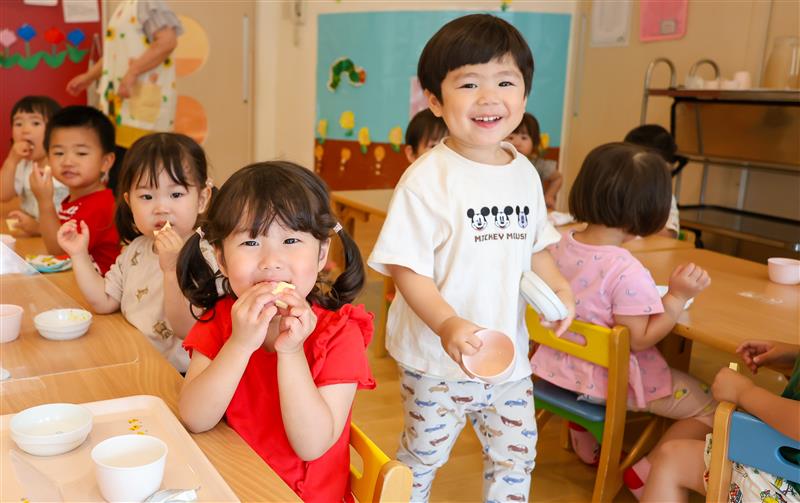 1日の活動とバランスをとりながら過ごします。延長保育ではおやつとお茶を提供しています。