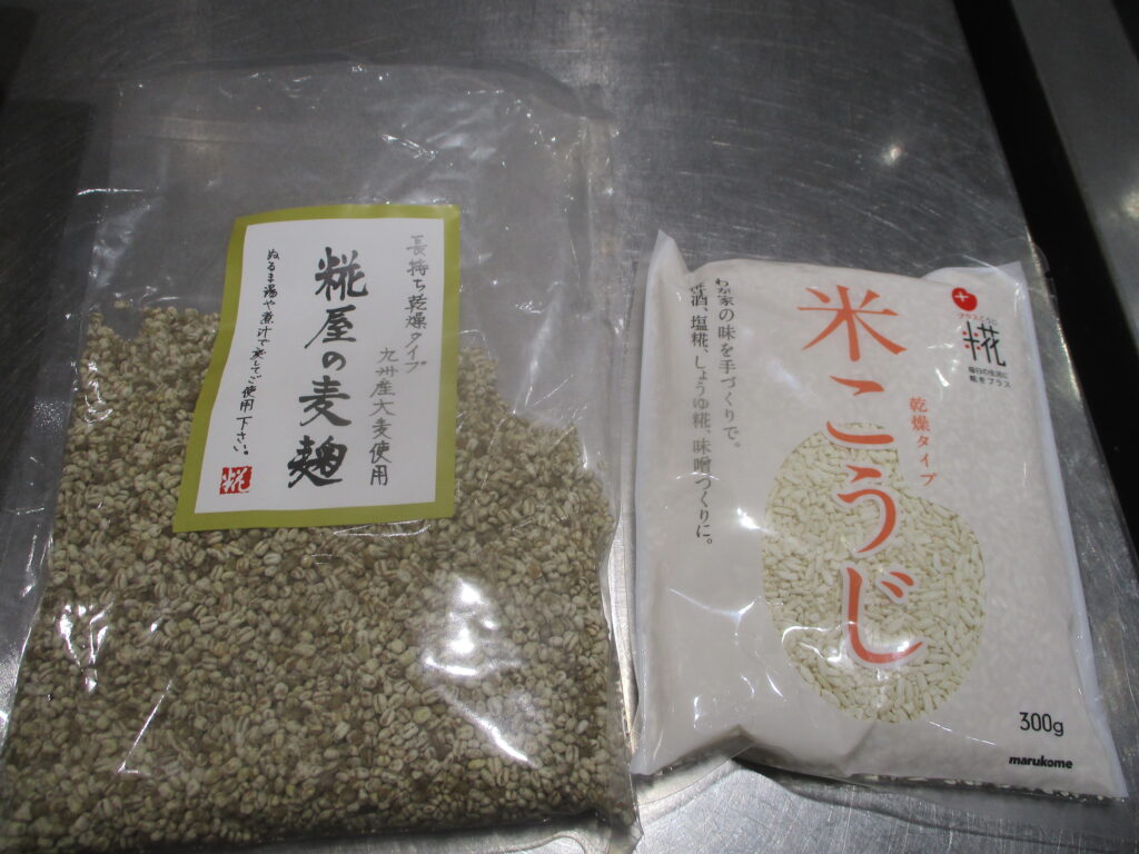 大豆味噌は米麹、麦味噌は麦麹を使用します。