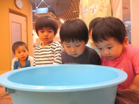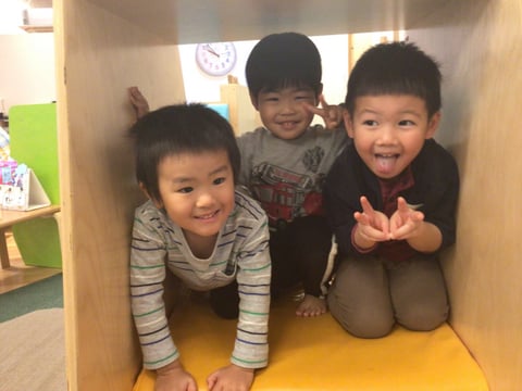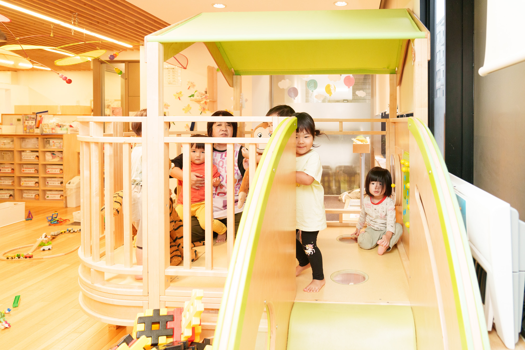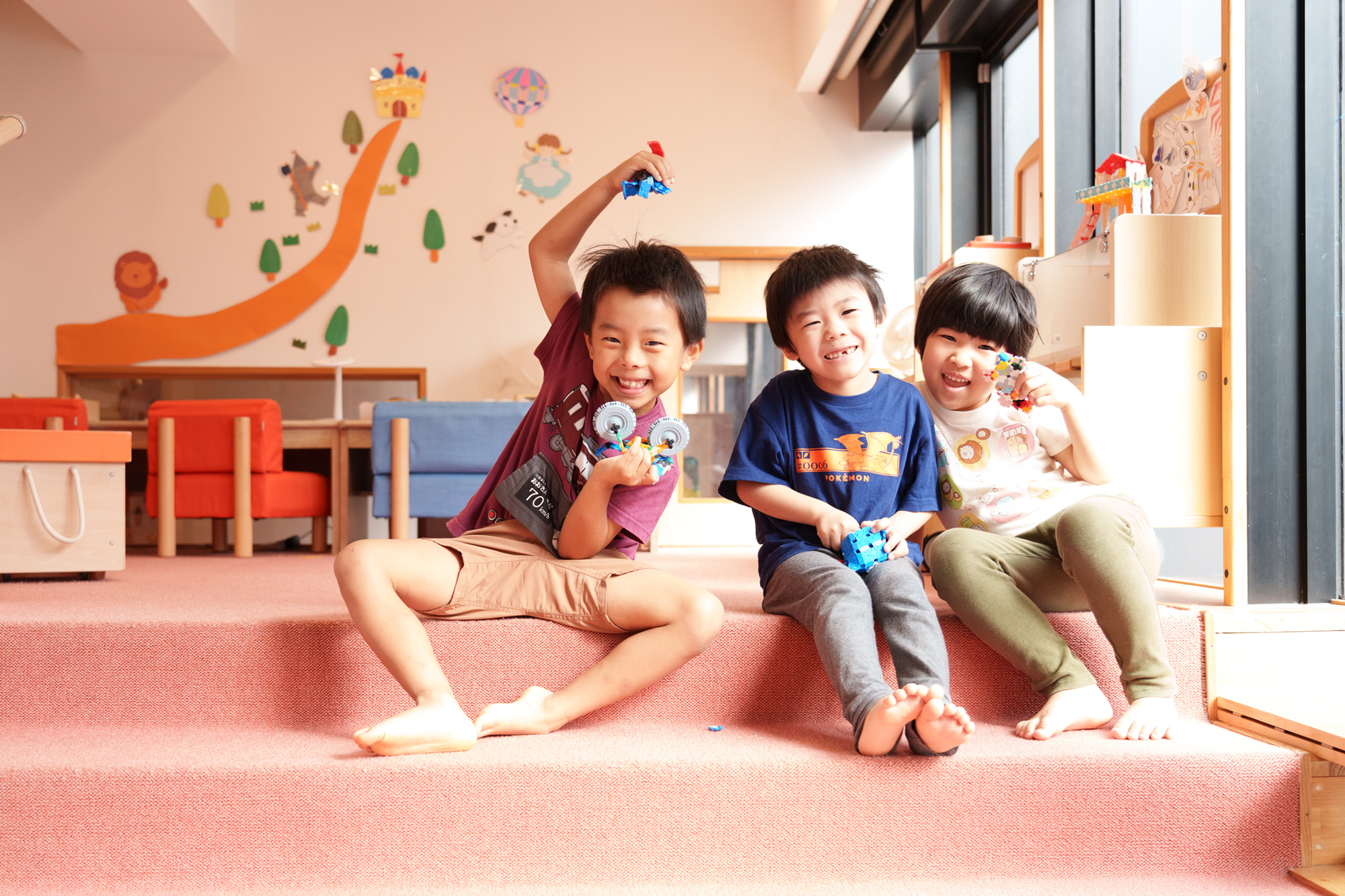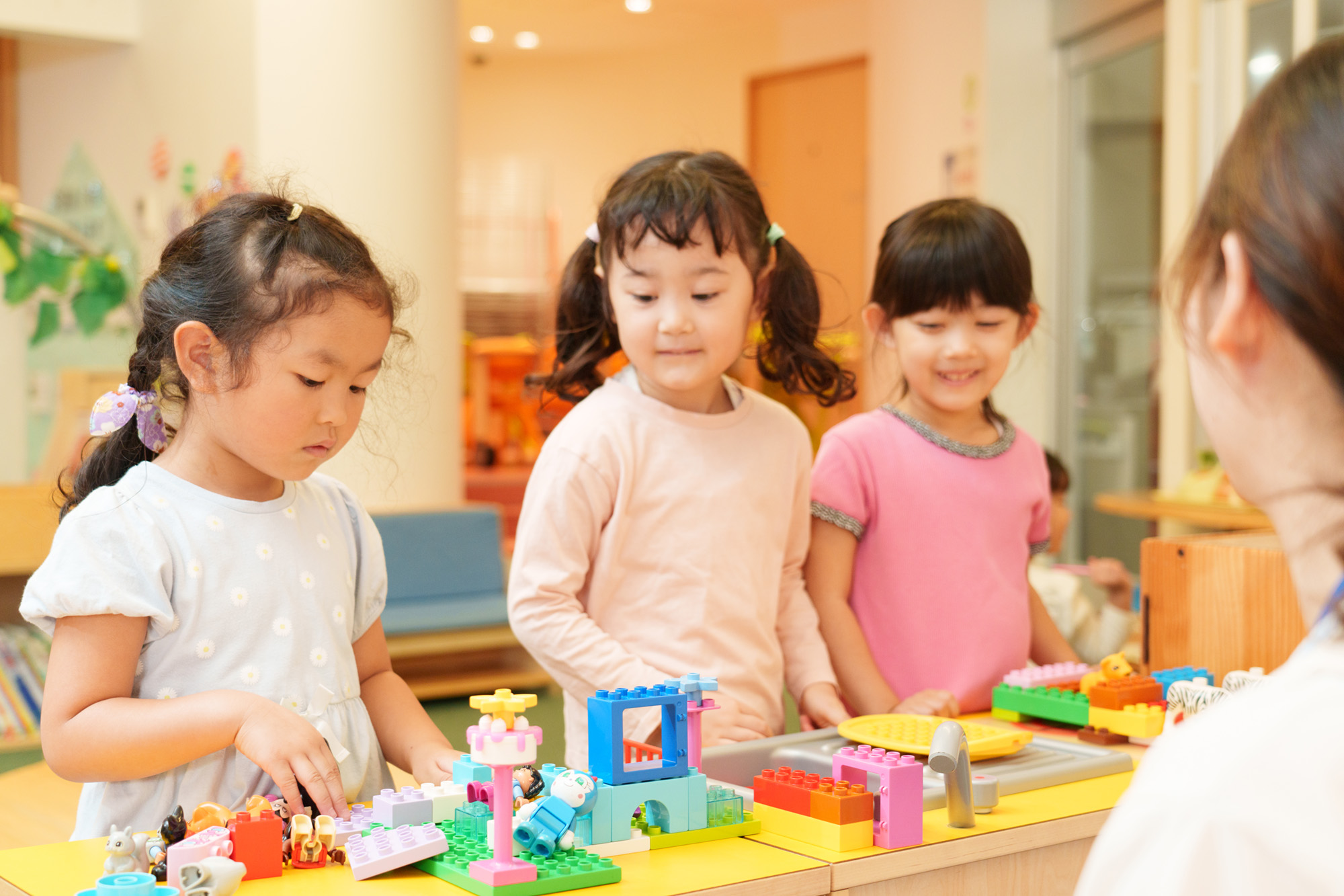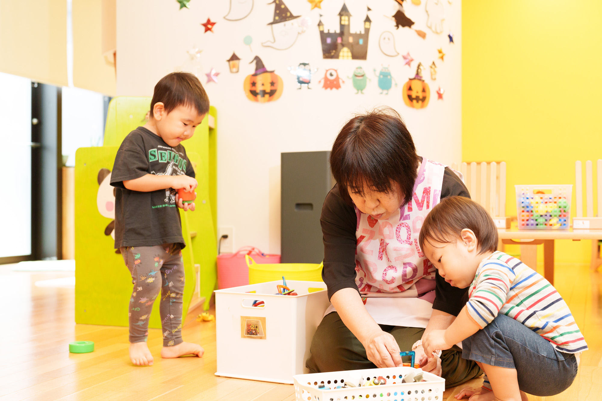 ベビーウィングへ登園。お部屋で異年齢のお友だちと関わりながら、自由に好きなあそびを楽しみます。
