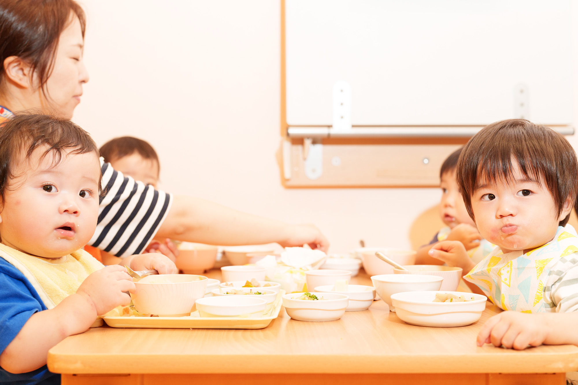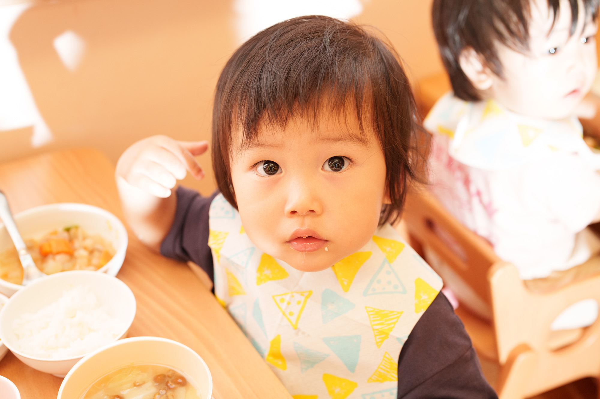 子どもたちの発達に合わせて咀嚼しやすい形・大きさで提供しています。安全に離乳食を提供できるよう、ご家庭での状況を把握するために保護者様には毎月面談のご協力をお願いしております。