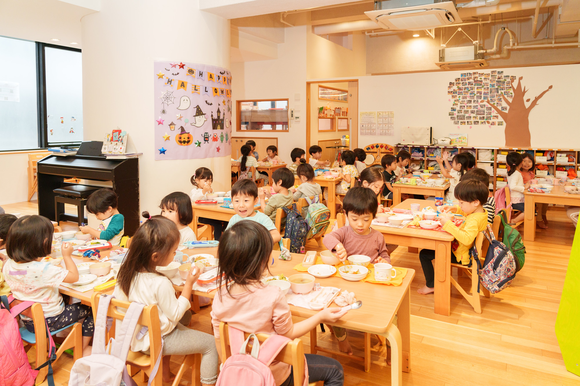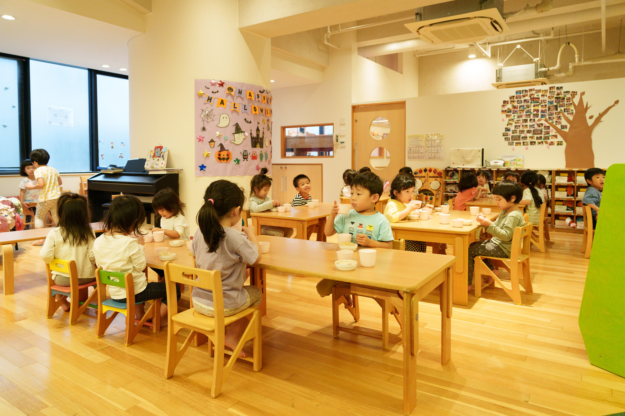 1日の活動とバランスをとりながら過ごします。延長保育ではおやつとお茶を提供しています。