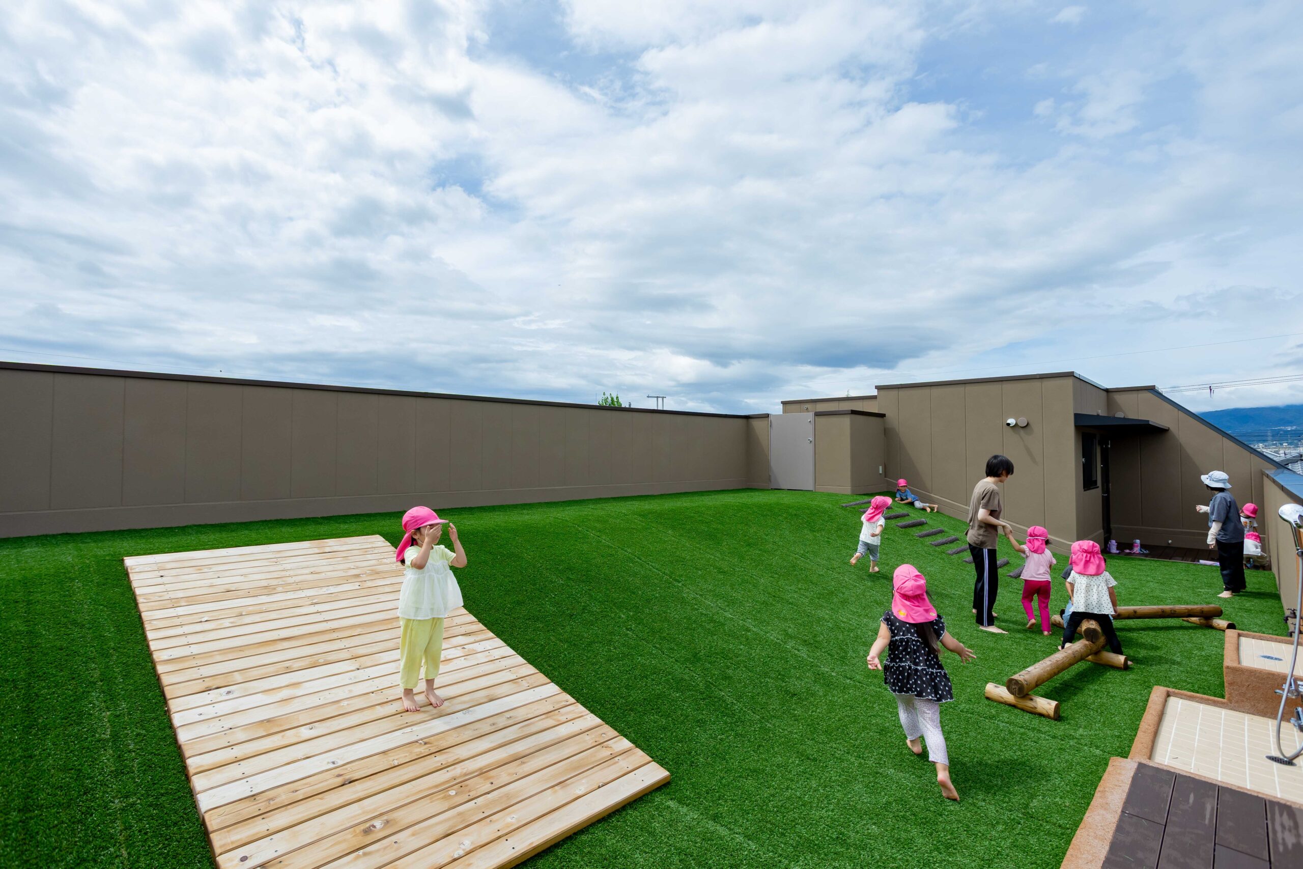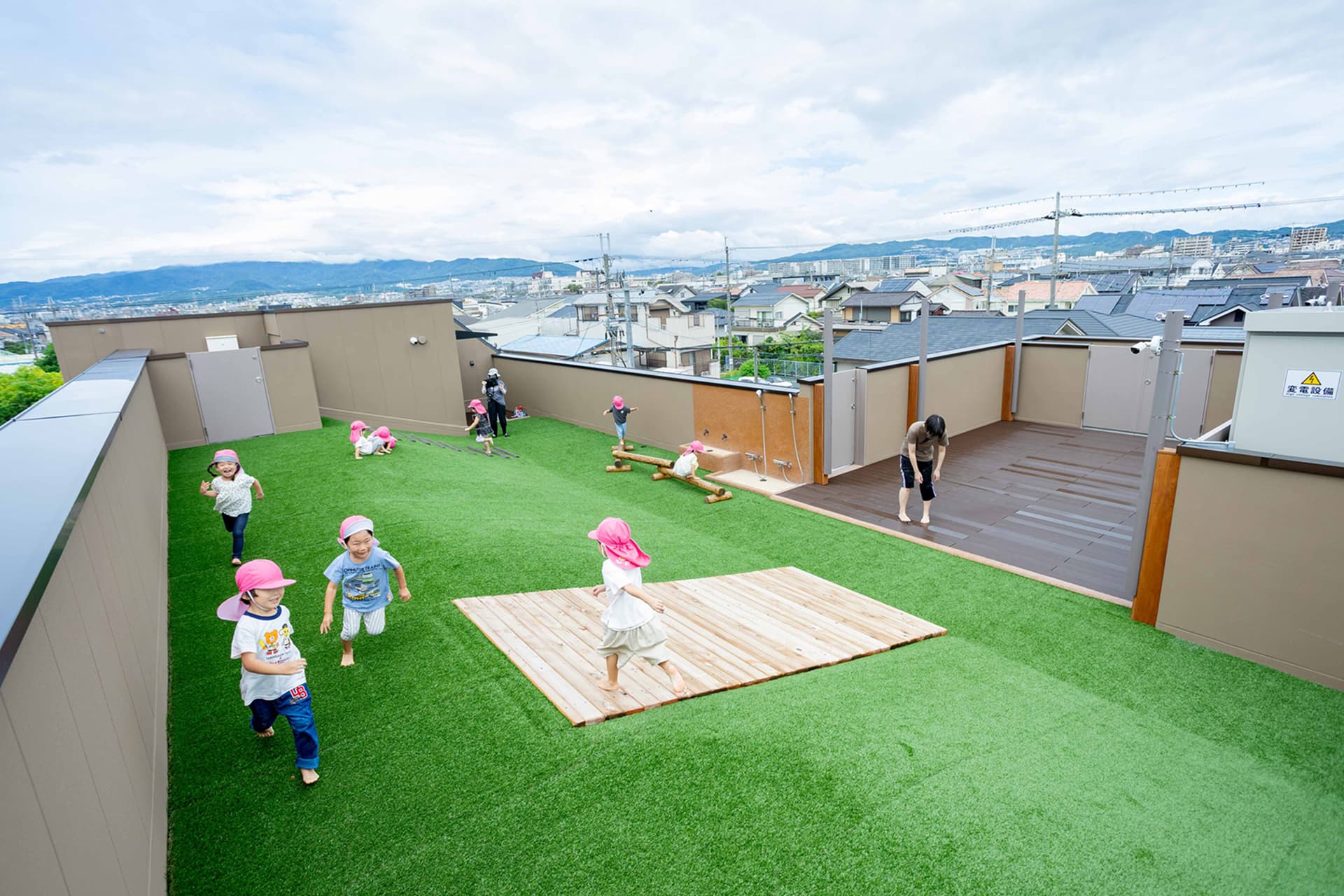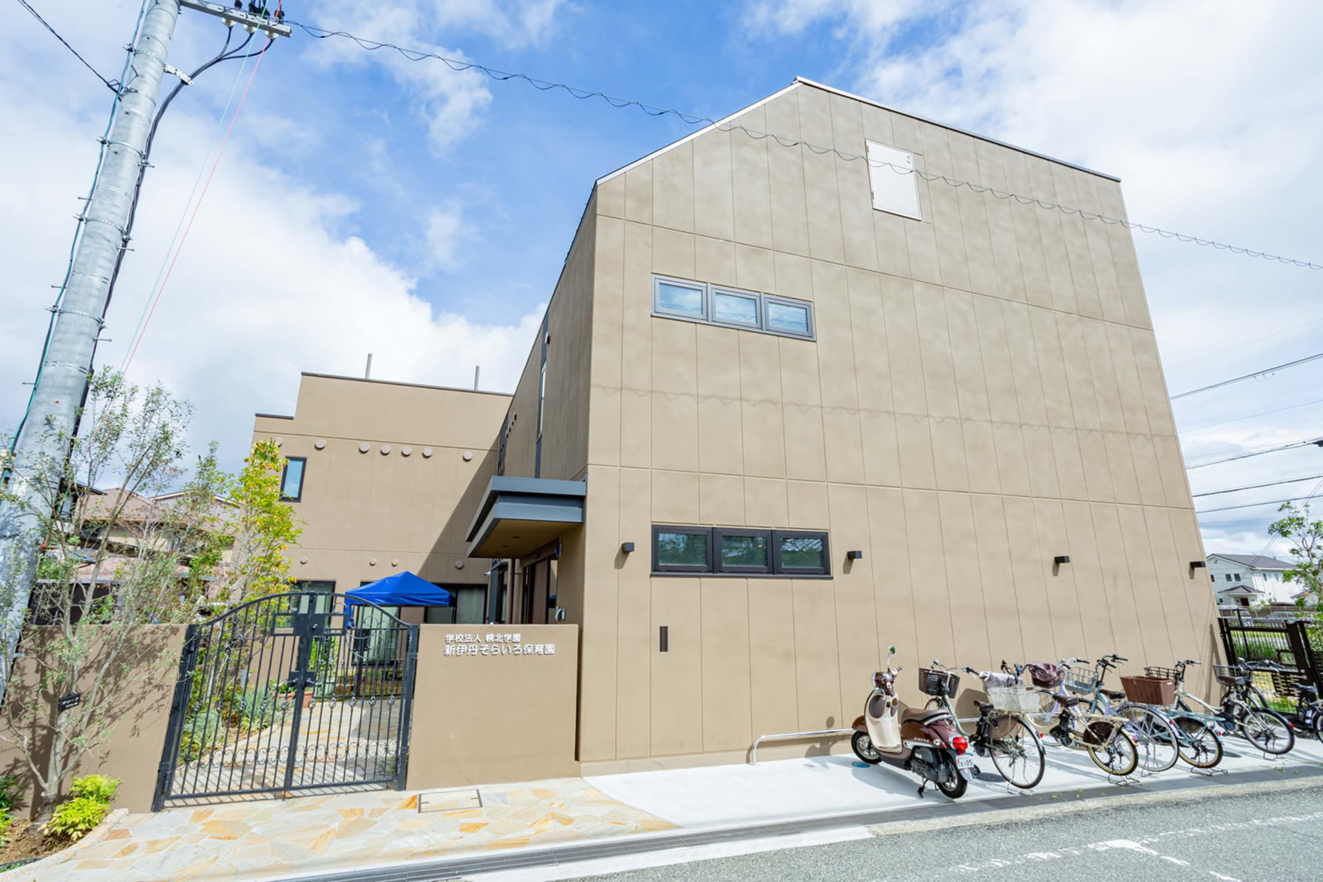 すぐ隣には伊丹市立南小学校があるなど、子育て中のご家庭が多く住まわれる地域にあります。園舎内は優しく温かな雰囲気と安全性に配慮した造りで、子どもたちが「のびのびあそび」「ワクワク」できるような設備・環境づくりをしています。​
