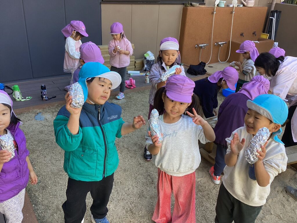 「これは世界一美味しい!」「世界一甘い!」と感想が飛び交うおやつ時間。「おかわりまだある?」と収穫から準備と自分たちで取り組んだ焼き芋の味は格別だったようです!