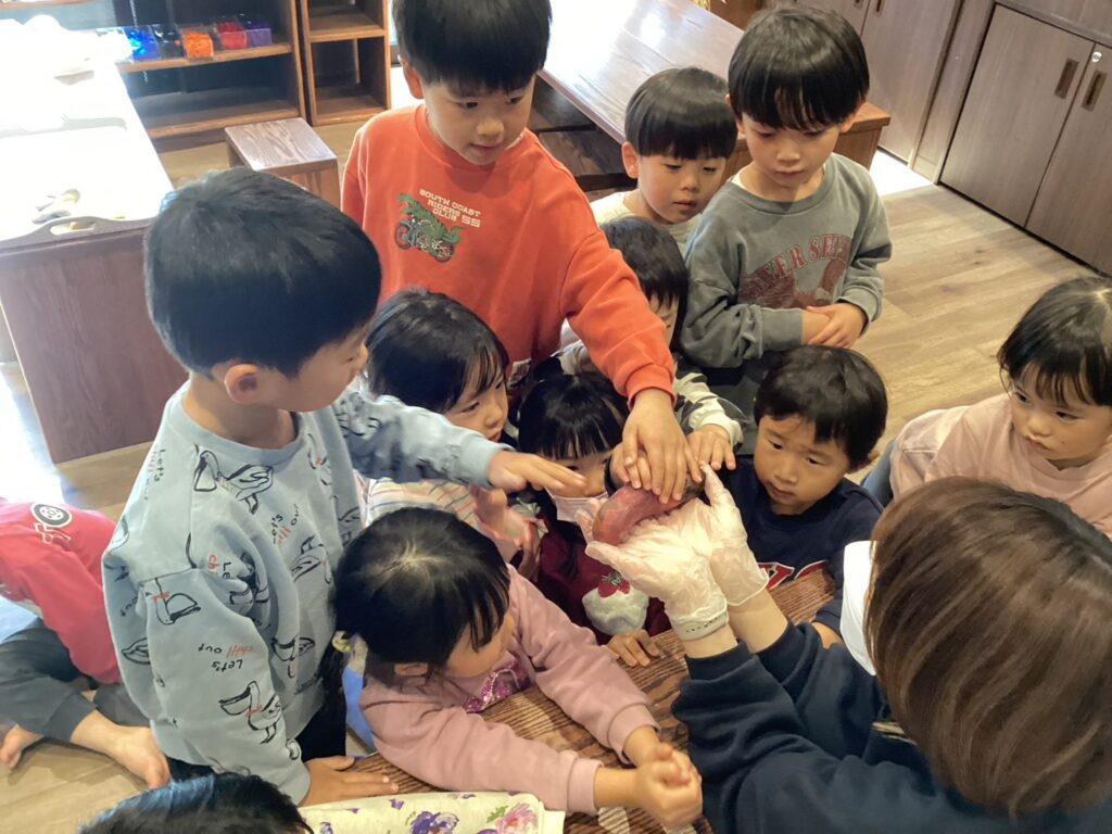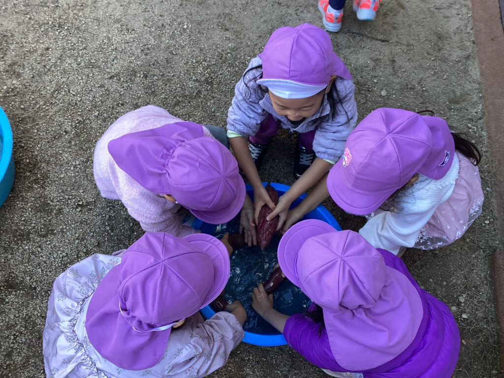 4・5歳児(すみれ・すずらん組)が、芋掘り遠足で自分たちで掘ってきたお芋を