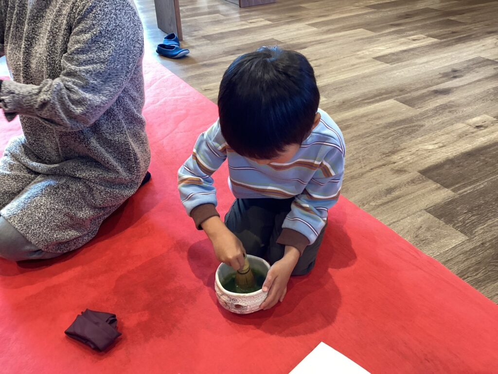 5歳児さんは、実際にお茶をたてる体験もしました。