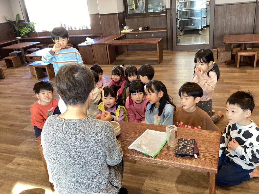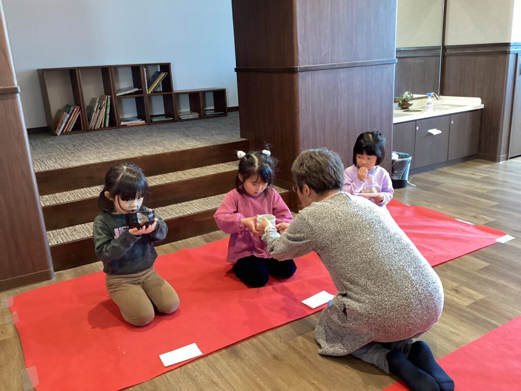 鏡開きに続き、4歳児・5歳児は日本の伝統行事のひとつである『初釜』も体験しました。