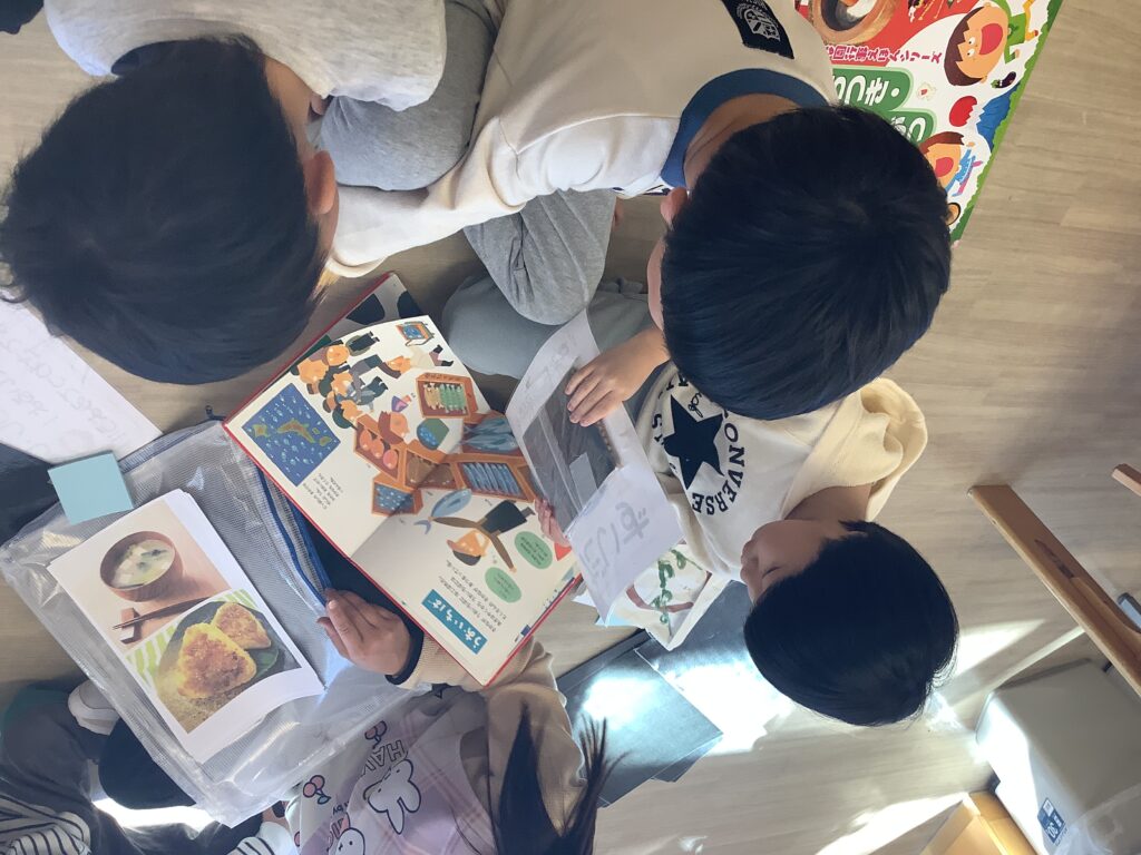 みんなでたくさん調べて味噌は塩・こうじ・大豆からできていることを知りました👀
