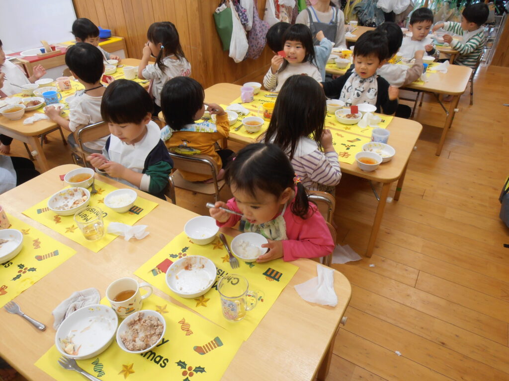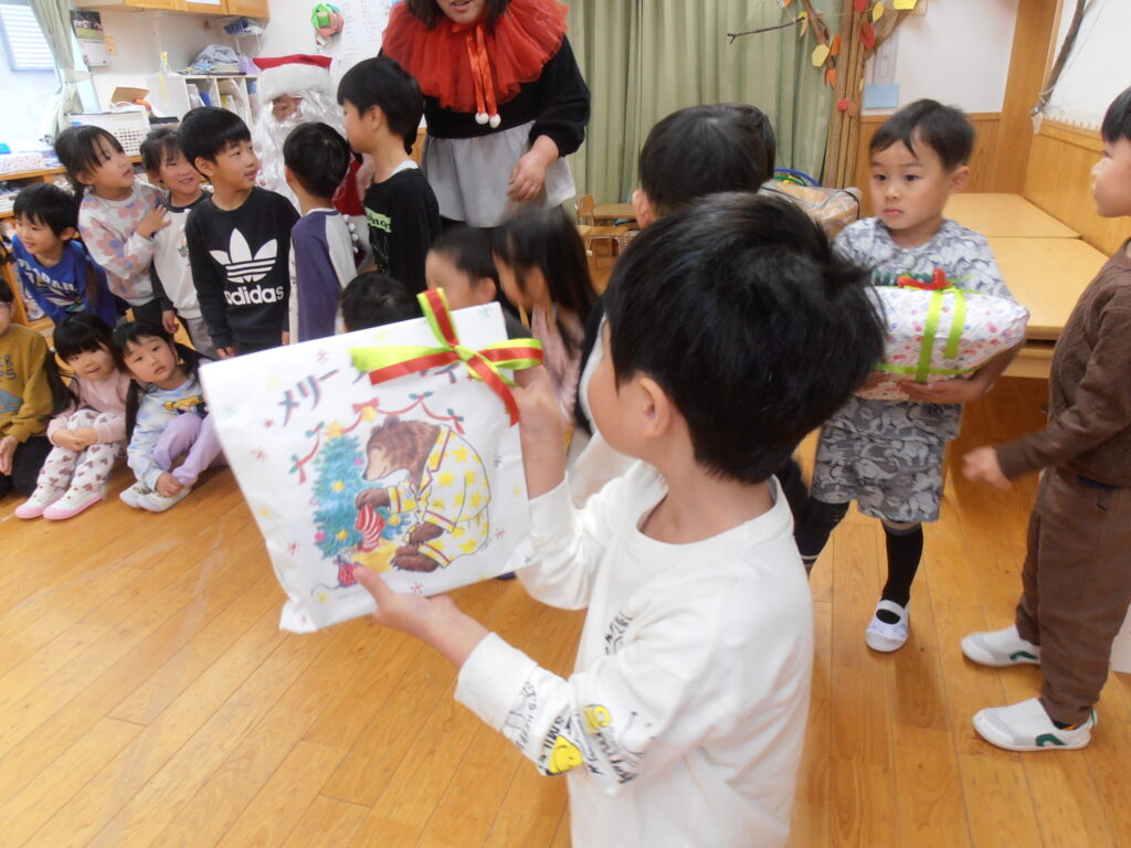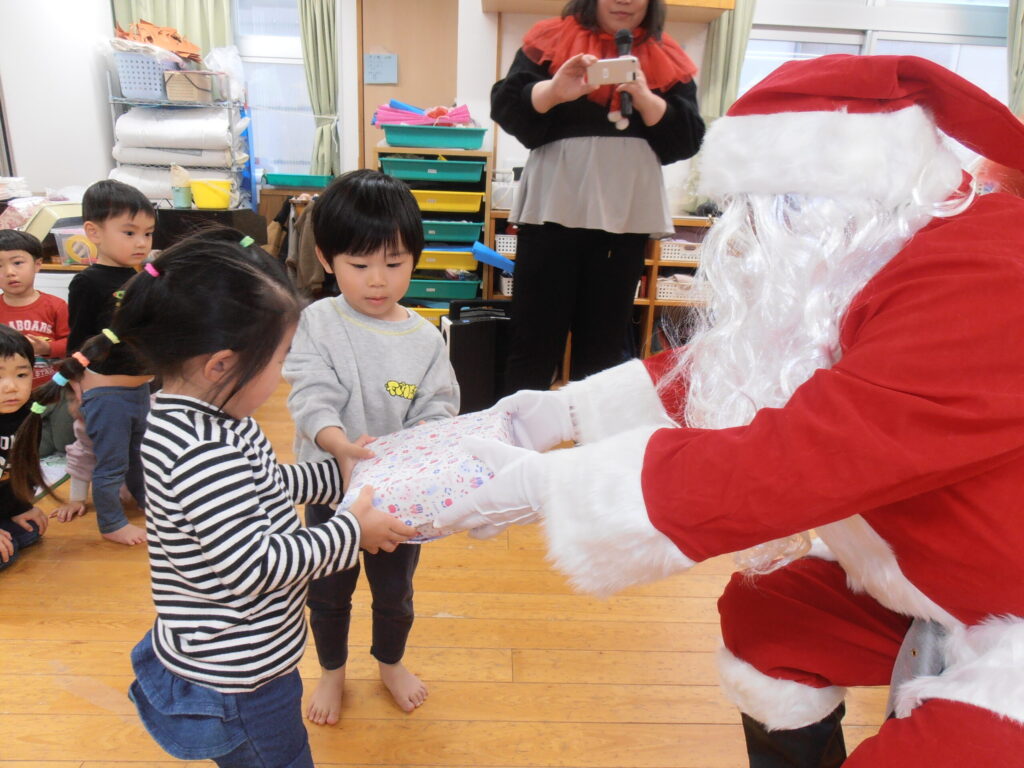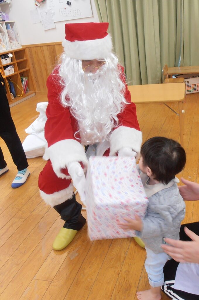 クリスマス会 2025.12.24 園の様子 第二所沢おひさま保育園にサンタさんがきました! 子どもたちはプレゼントをもらって大喜びです。 もらったプレゼントで夢中になって遊びました。 クリスマスメニューのバイキング! メリークリスマス! 主任 藤木