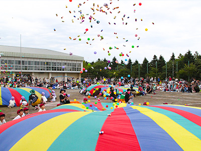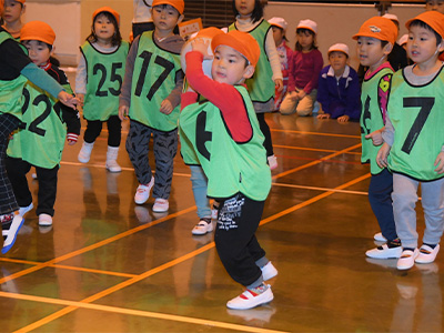 - 練習を通して心も体もたくましくなった子どもたちは、自分の持っている力を充分に発揮し、力いっぱい競技に挑みます。園児・職員・保護者、みんなで力を合わせて協力し盛り上げます。保護者の方や卒園児、そして未就園児が参加する競技もあります。