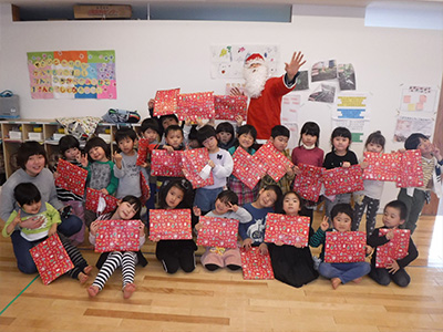 - 園庭や公園で、手作りの米ぞりを使ってそり滑りを楽しむほか、地域の雪まつりにも見学に行きます。