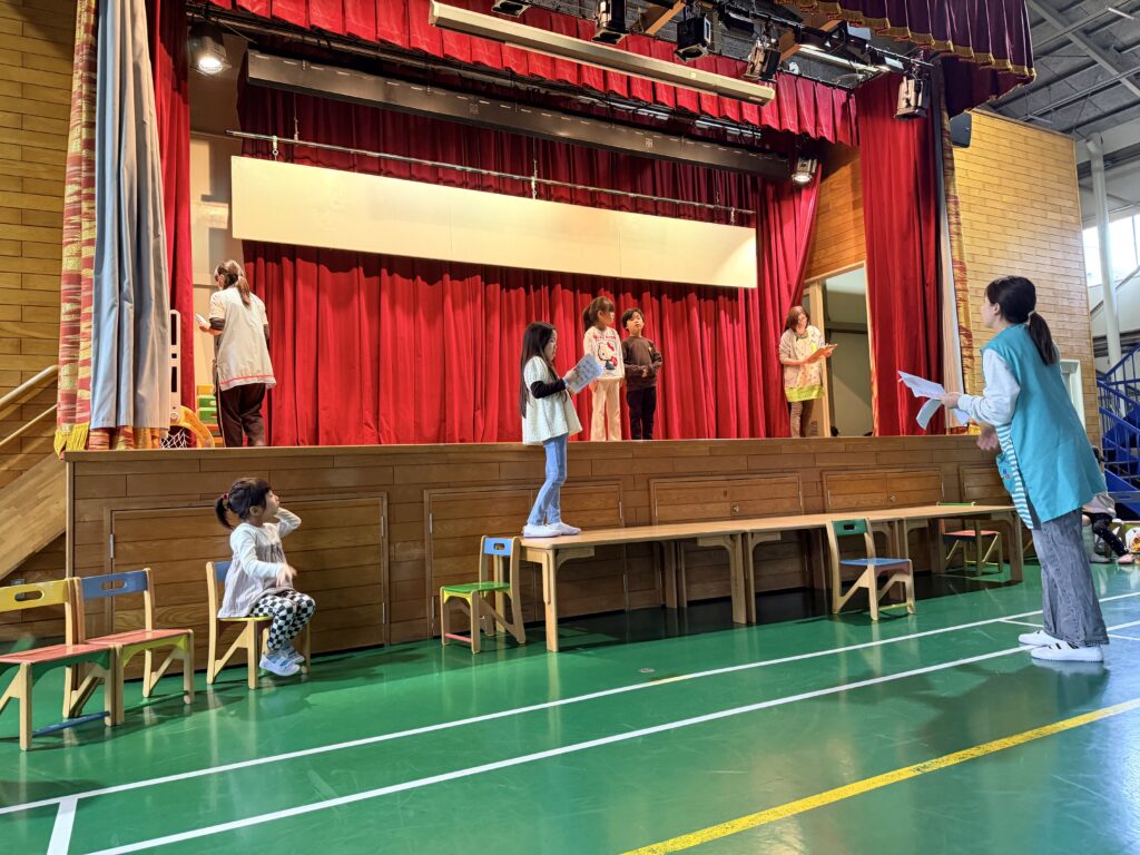 会場の広さに負けない大きな声で劇の練習をしてきました!