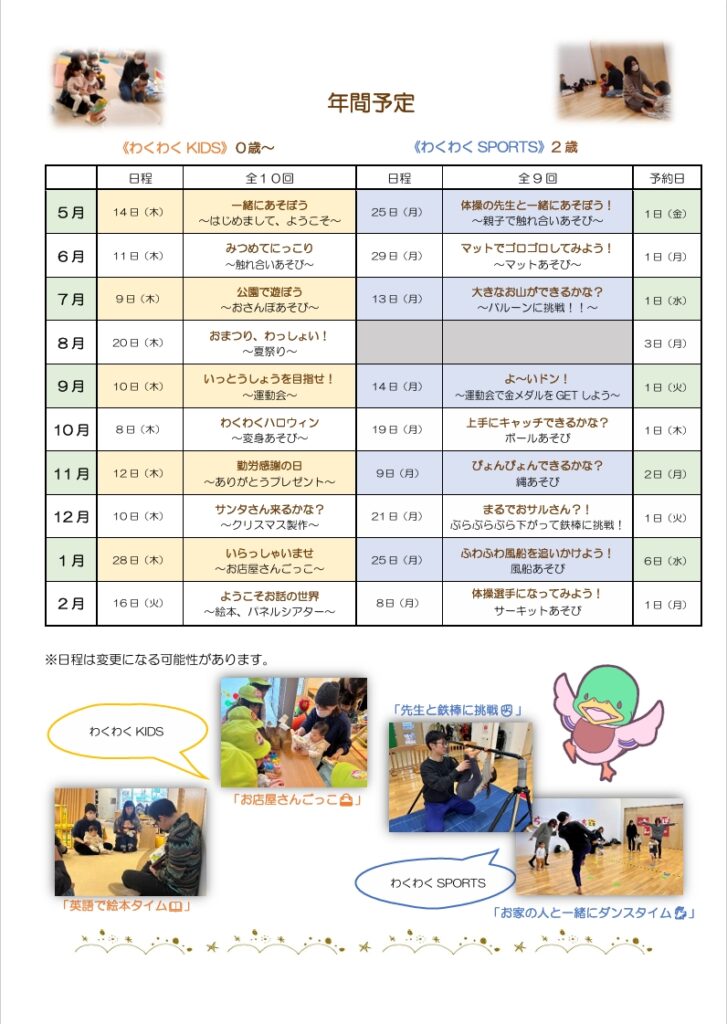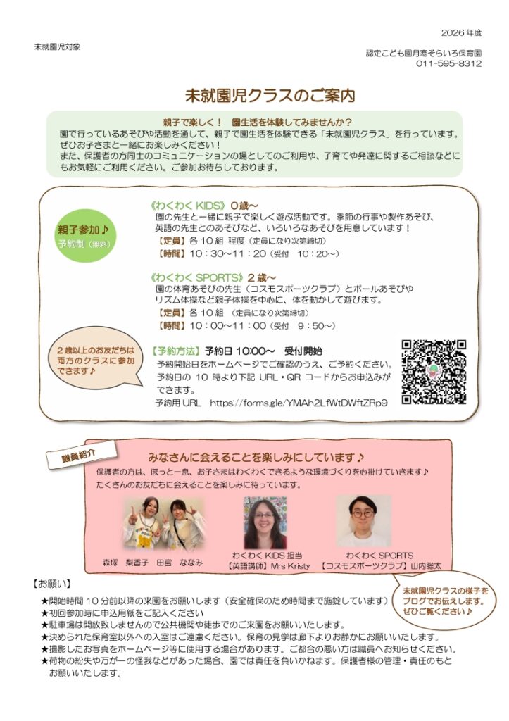 詳しくはホームページの 園開放/未就園教室ページの「未就園クラスのご案内」をご覧ください。