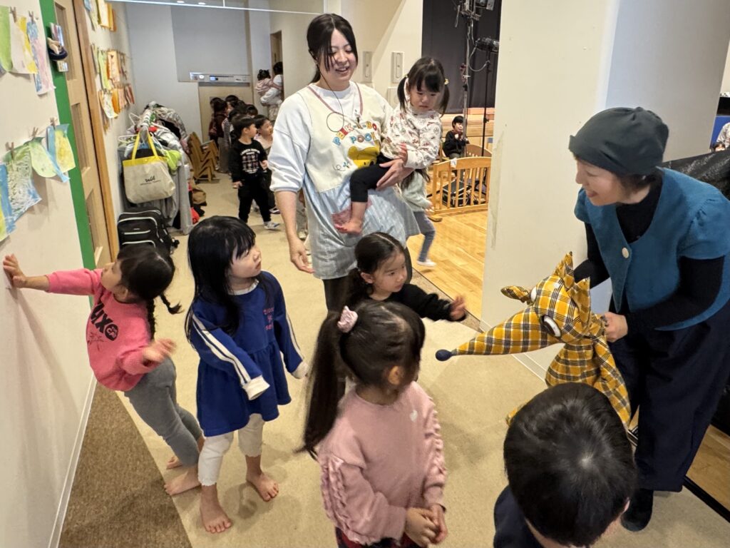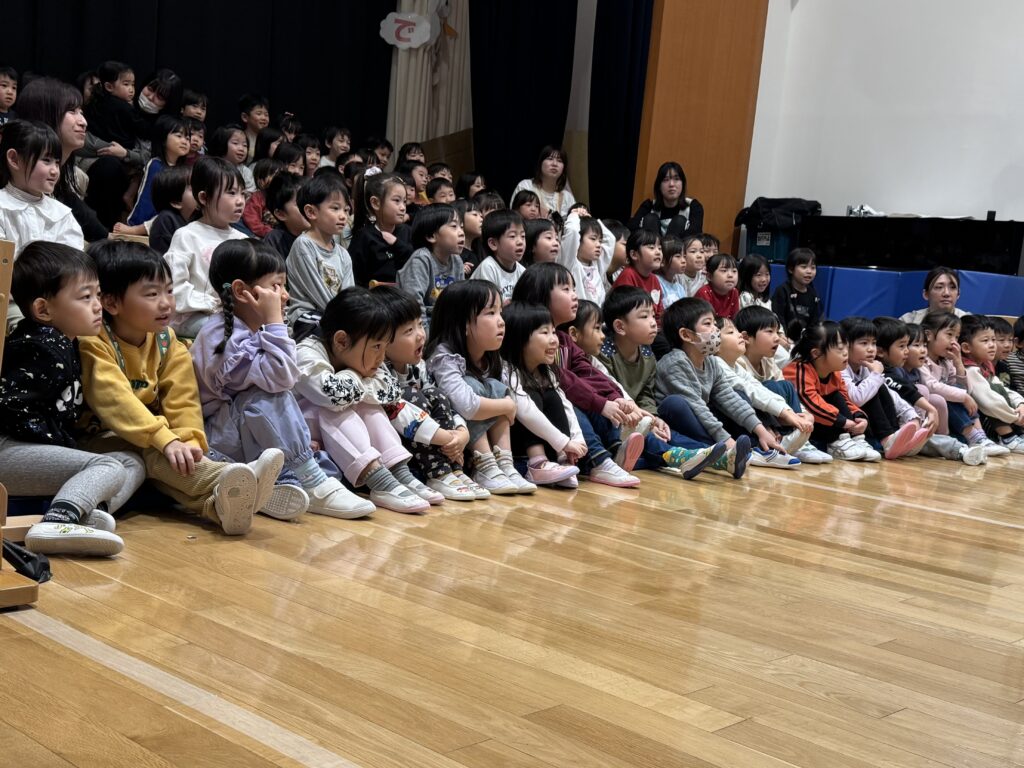 ホールに準備をしている時から、興味津々!!「どんなお話なのかな?」と、わくわくしていた子どもたちです!