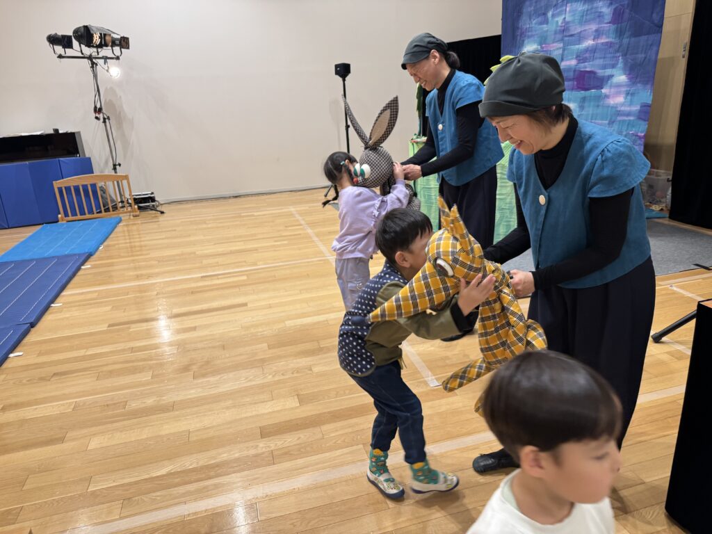 『のんのんのんたとちびうさぎ』は、キツネとウサギの友情のお話で、子どもたちは真剣に見ていました。