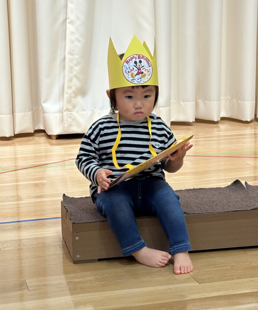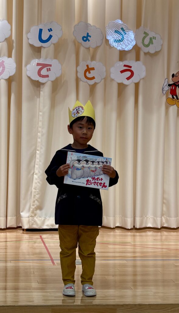 お誕生日のお友だちは名前が呼ばれるとドキドキでステージへ!