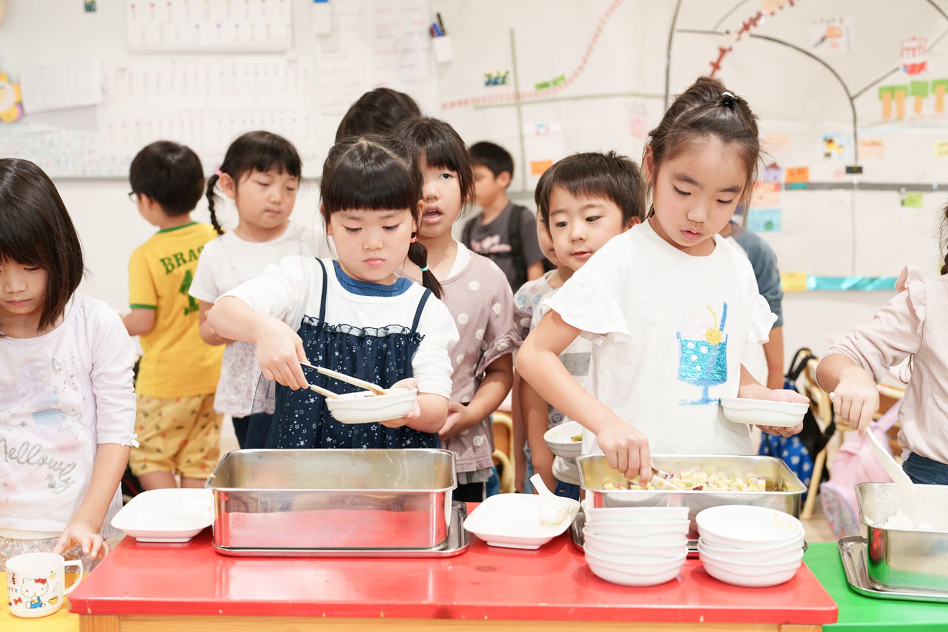 4礼儀正しく、人は自分以外の人に感謝されることを心地よいと感じる本能を持っています。生活の中で、お互いを思いやる気持ちや感謝の気持ち、自分の行動を振り返ることの大切さを学びます。