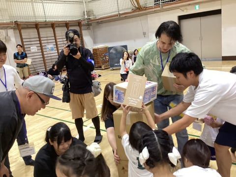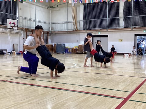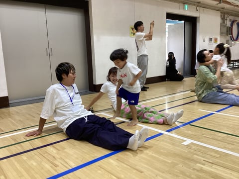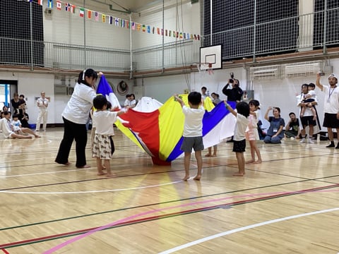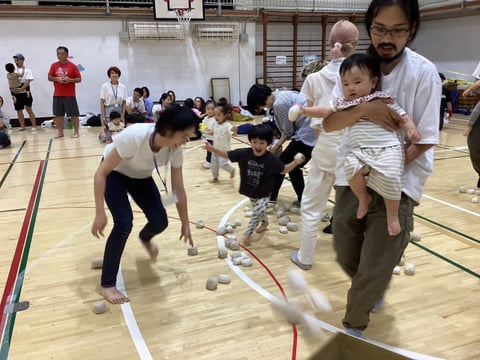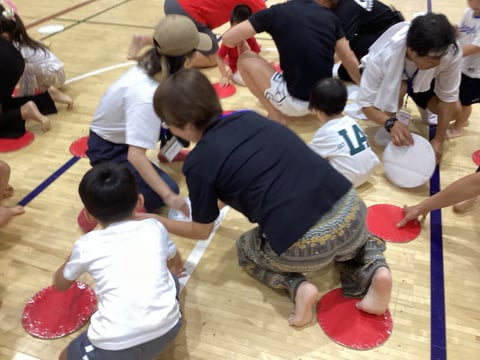 話し合いながらどんどん積み上げました。ダンスが終わったらたくさん玉を入れよう!