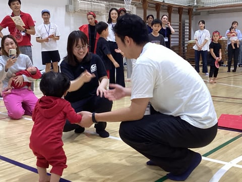 乳児さんはハイハイで登ります。登りきったら「じゃんけんぽん!」